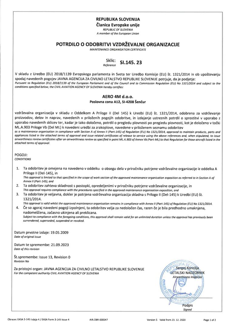 Aero 4M is a Slovenian company specialising in aircraft maintenance and full airworthiness management. Now also with a hangar in Osoppo, Italy we specialise in Single Turbine Aircraft maintenance. We are distinguished by our quality, flexibility, and expertise in delivering fit for purpose solutions.